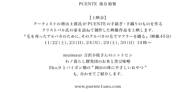2010年 アルパカニット -PUENTEで冬支度- 2012年 アルパカニット -PUENTEで冬支度- 2013年 アルパカニット -PUENTEで冬支度-