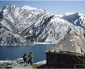 カシュガルの話の前にウルムチのことを少し。 車で3時間の郊外に天池(テンチ)というところがある。海抜5500mのボゴダ山の中腹(海抜2000m)にある湖だ。息を飲む美しさ、とはこのことだ。空気は胸に痛いほど清清しく、水は青々と澄みわたり、遠くボゴダ山には真っ白な万年雪。